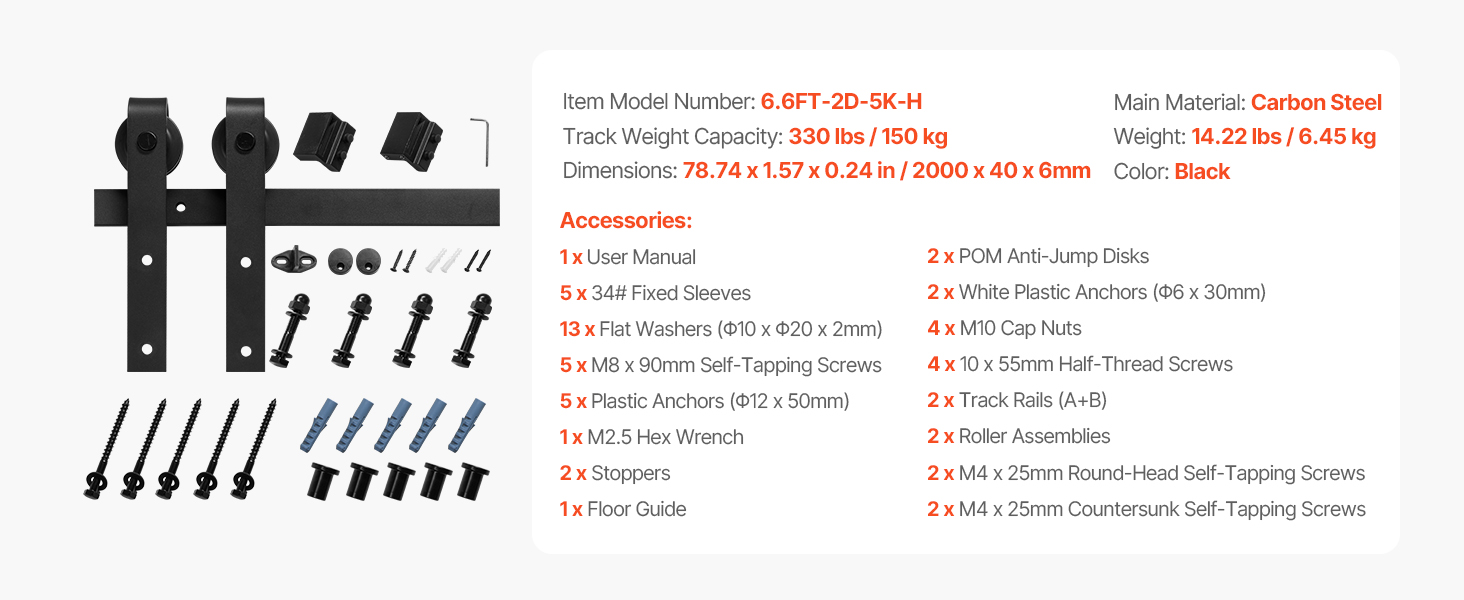 Táto stodolová dverová koľajnica, vyrobená z hrubej a odolnej uhlíkovej ocele, podopiera vaše dvere bez toho, aby sa ohýbala alebo deformovala. Vďaka limitným blokom a POM dielikom proti skákaniu sa nemusíte obávať, že by sa dvere zošmykli alebo poskakovali - váš priestor bude bezpečný!