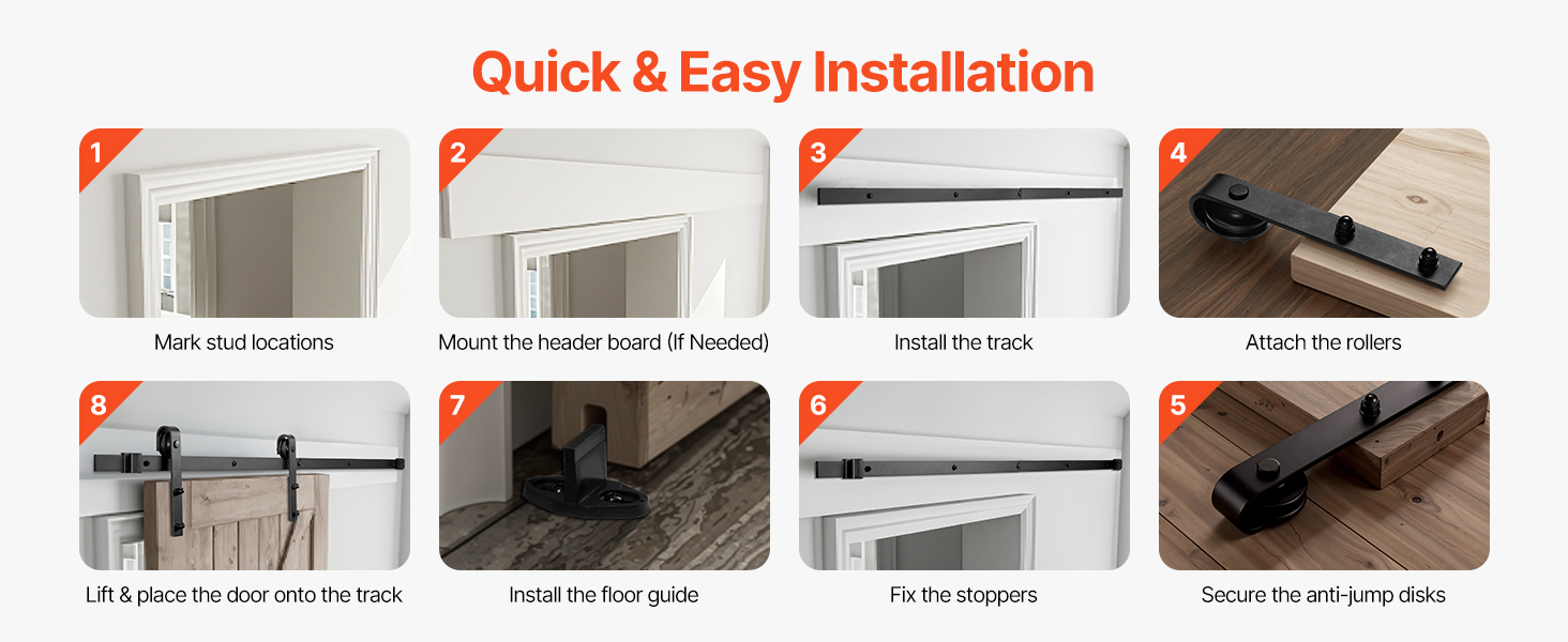 Vďaka všetkému potrebnému príslušenstvu a prehľadnému, ľahko použiteľnému návodu je nastavenie súpravy kovania pre posuvné dvere hračkou! Nainštalujte ju v priebehu chvíľky a užívajte si svoj štýlový a funkčný priestor.