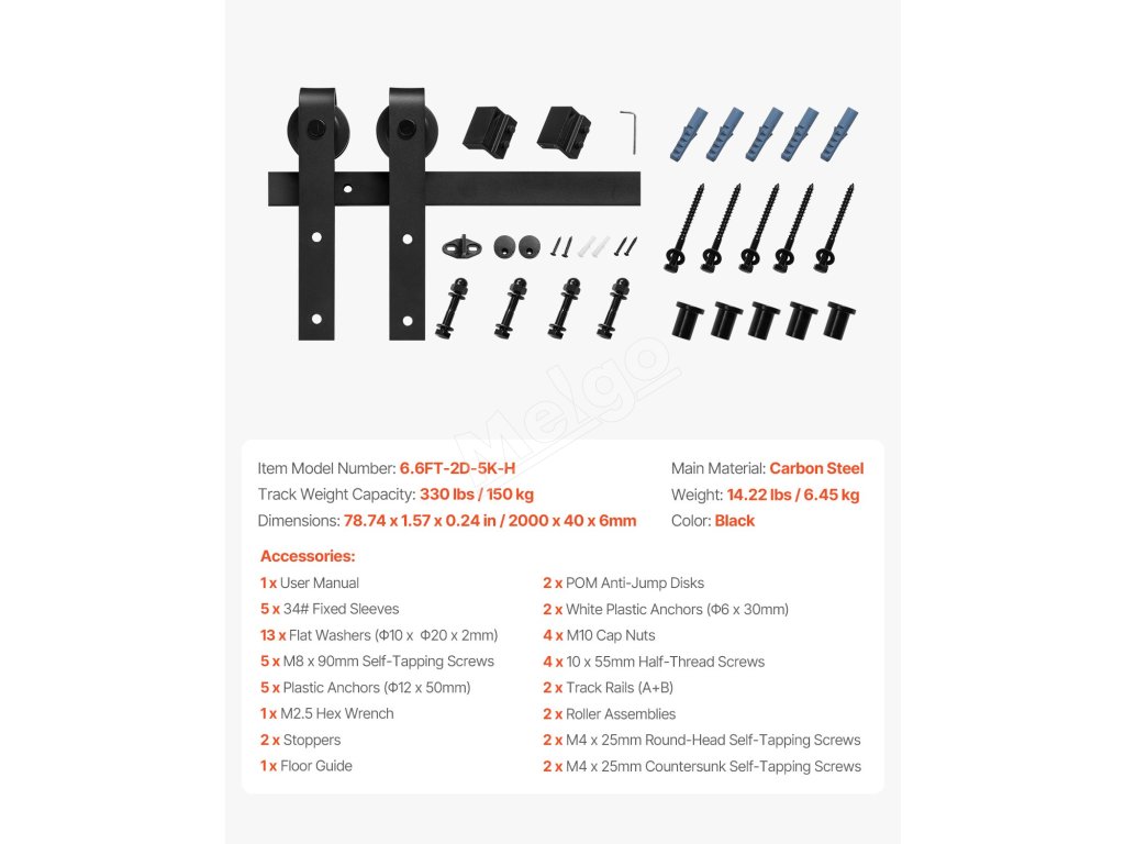 Táto stodolová dverová koľajnica, vyrobená z hrubej a odolnej uhlíkovej ocele, podopiera vaše dvere bez toho, aby sa ohýbala alebo deformovala. Vďaka limitným blokom a POM dielikom proti skákaniu sa nemusíte obávať, že by sa dvere zošmykli alebo poskakovali - váš priestor bude bezpečný!