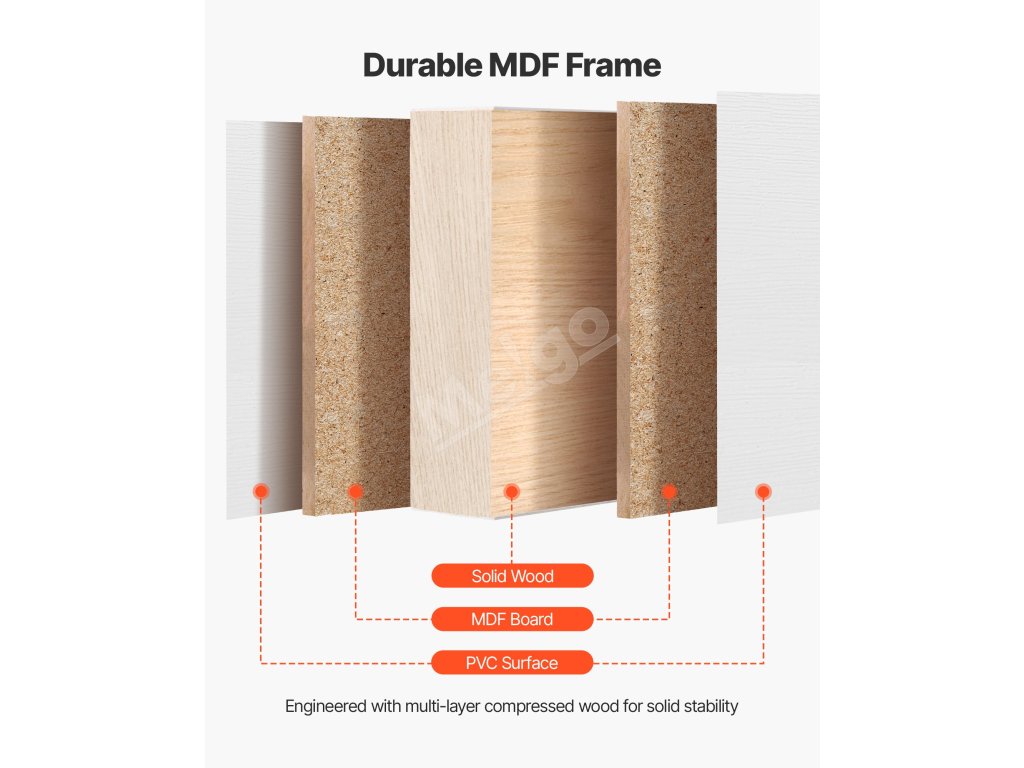 Vďaka odolnému drevenému rámu, vodeodolnému povrchu a matnému tvrdenému sklu 5-Lite poskytujú naše posuvné dvere do skrine plynulé posúvanie a zároveň šetria miesto. Rozmery každého dverného panelu: 635 mm (Š) x 1986 mm (V), hrúbka: 22 mm. Hodí sa na otvory dverí s rozmermi 1219 x 2032 mm.