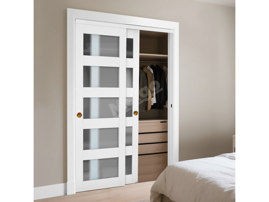 Posuvné dvere do skrine 1219 mm × 2032 mm, 5 polí matné sklo, MDF s PVC