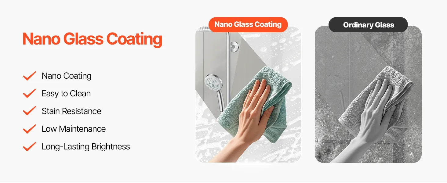 Inovatívna povrchová úprava posuvných sprchových dverí poskytuje samočistiaci efekt, vďaka ktorému voda a nečistoty ľahko skĺznu. Nielenže zabraňuje poškodeniu vodou a korózii, ale tiež predlžuje pracovnú službu skla, čím zvyšuje celkovú eleganciu vášho vaňového kúta.