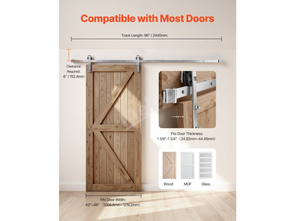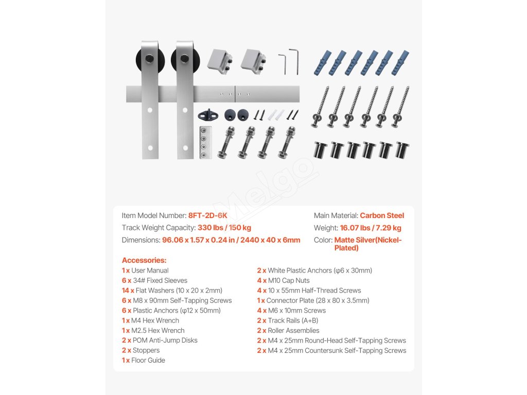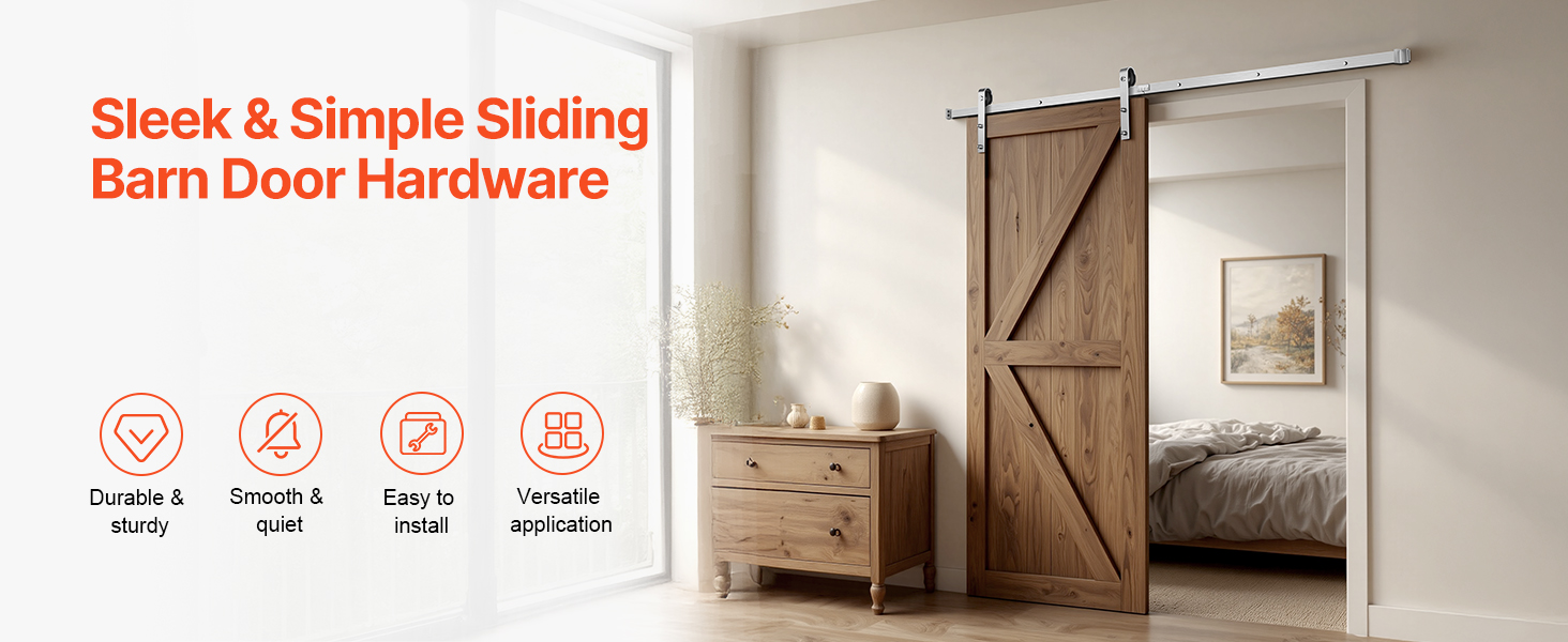 So všetkým potrebným príslušenstvom a prehľadným, ľahko použiteľným návodom je nastavenie súpravy kovania pre posuvné dvere hračkou! Nainštalujte ju v priebehu chvíľky a užívajte si svoj štýlový a funkčný priestor.