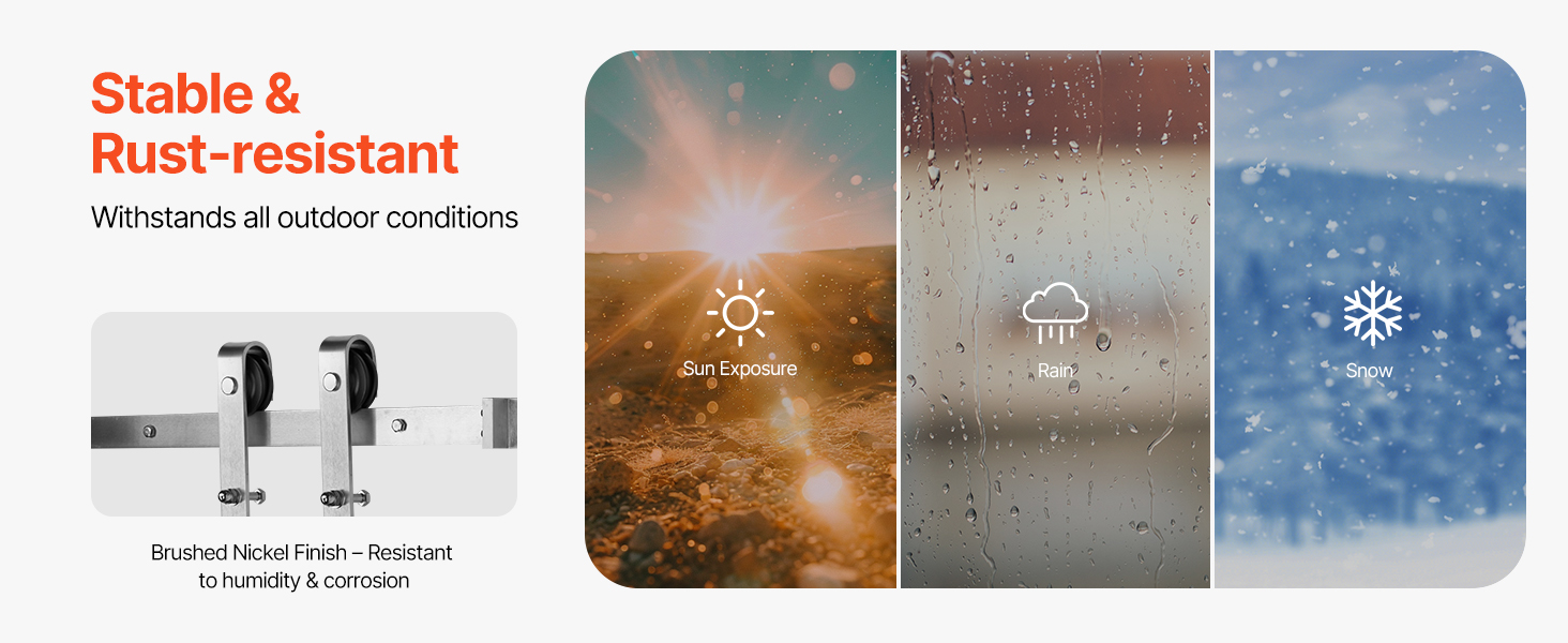 Lesklá povrchová úprava z brúseného niklu vnesie do vášho priestoru elegantný nádych a zároveň zabezpečí, že vaša súprava kovania na posuvné stodolové dvere zostane bez hrdze a odolná voči poveternostným vplyvom. Je ideálna na použitie v interiéri aj exteriéri a zostane krásna dlhé roky s minimálnou údržbou.