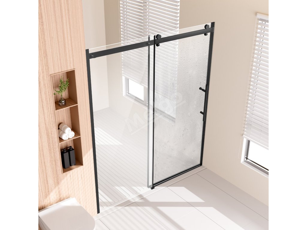 Posuvné bezrámové dvere 58-59"×75" 5/16"(8mm) tvrdené sklo čierne