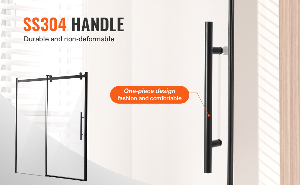 Rukoväť z nehrdzavejúcej ocele 304 týchto sprchových posuvných sklenených dverí má integrovaný dizajn úchytu na ľahké tlačenie a ťahanie. Je nielen krásna a elegantná, ale aj odolná proti korózii a ľahko sa čistí, čo vám prináša pohodlné používanie.