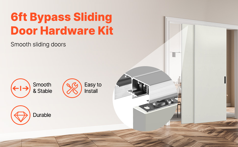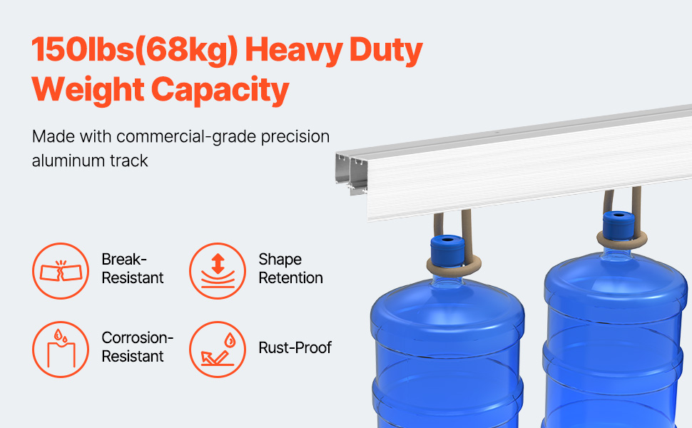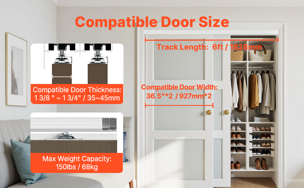 Táto súprava obchádzkového dverového kovania s dĺžkou 6 stôp je vhodná pre dverové panely s hrúbkou od 1 3/8" do 1 3/4" a šírkou 36,5" x 2. Udrží maximálnu hmotnosť 150 kg, čo vám umožní vybrať si správnu veľkosť na základe vašich potrieb.