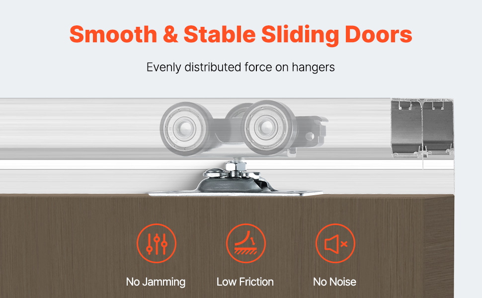 Vešiaky v tejto dráhe na šatníkové dvere majú trojkolesovú konštrukciu s ťažkými jadrami guľôčkových ložísk, čo zabezpečuje rovnomerné rozloženie hmotnosti. Vďaka tomu sa dvere hladko posúvajú, znižuje sa ich hluk a zabezpečuje sa stabilná prevádzka.