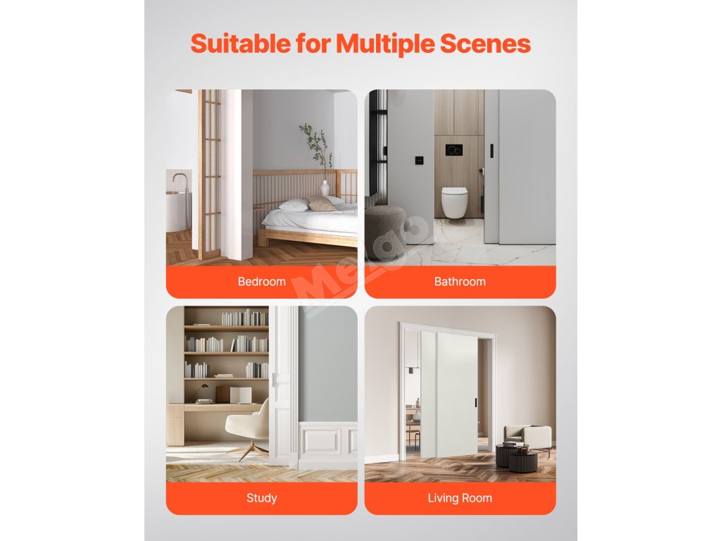 Táto súprava obchádzkového dverového kovania s dĺžkou 6 stôp je vhodná pre dverové panely s hrúbkou od 1 3/8" do 1 3/4" a šírkou 36,5" x 2. Udrží maximálnu hmotnosť 150 kg, čo vám umožní vybrať si správnu veľkosť na základe vašich potrieb.