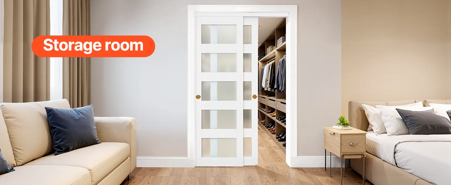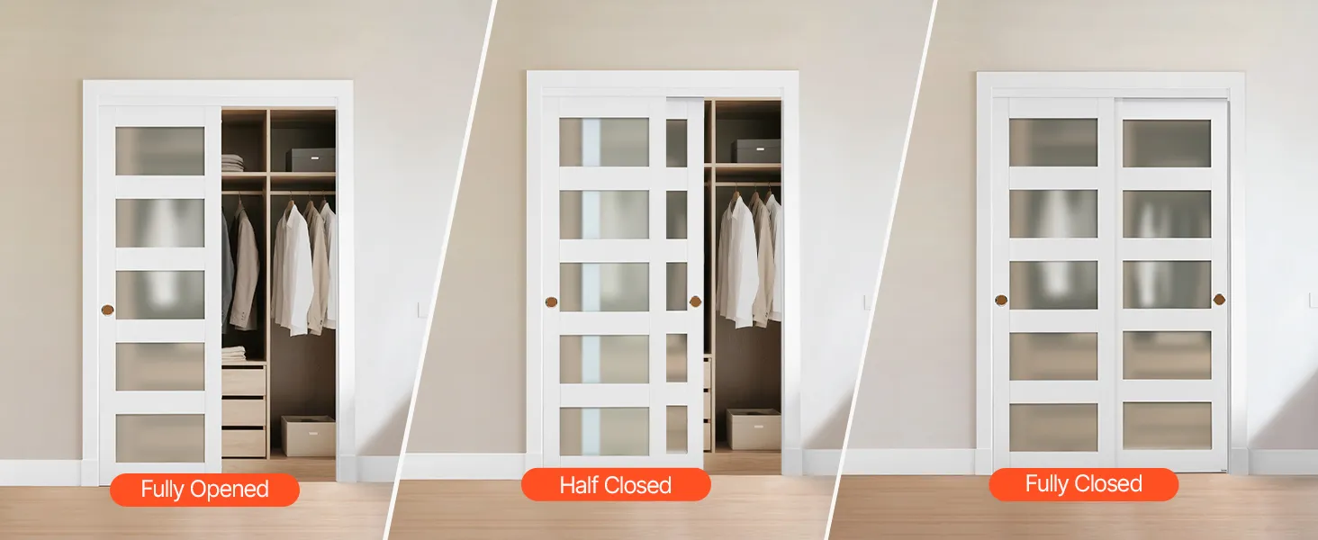 Posuvné dvere do skrine 1219 mm × 2032 mm, 5 polí matné sklo, MDF s PVC