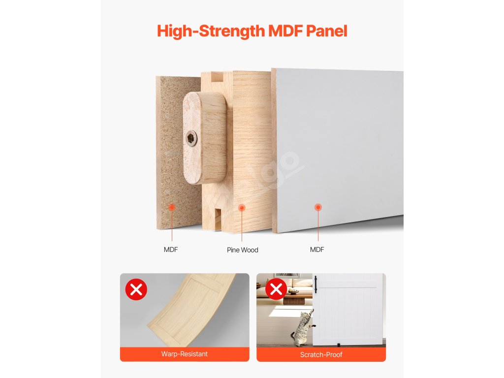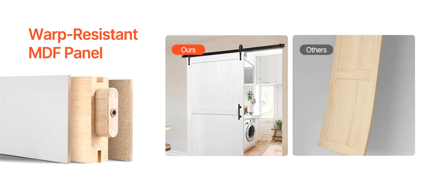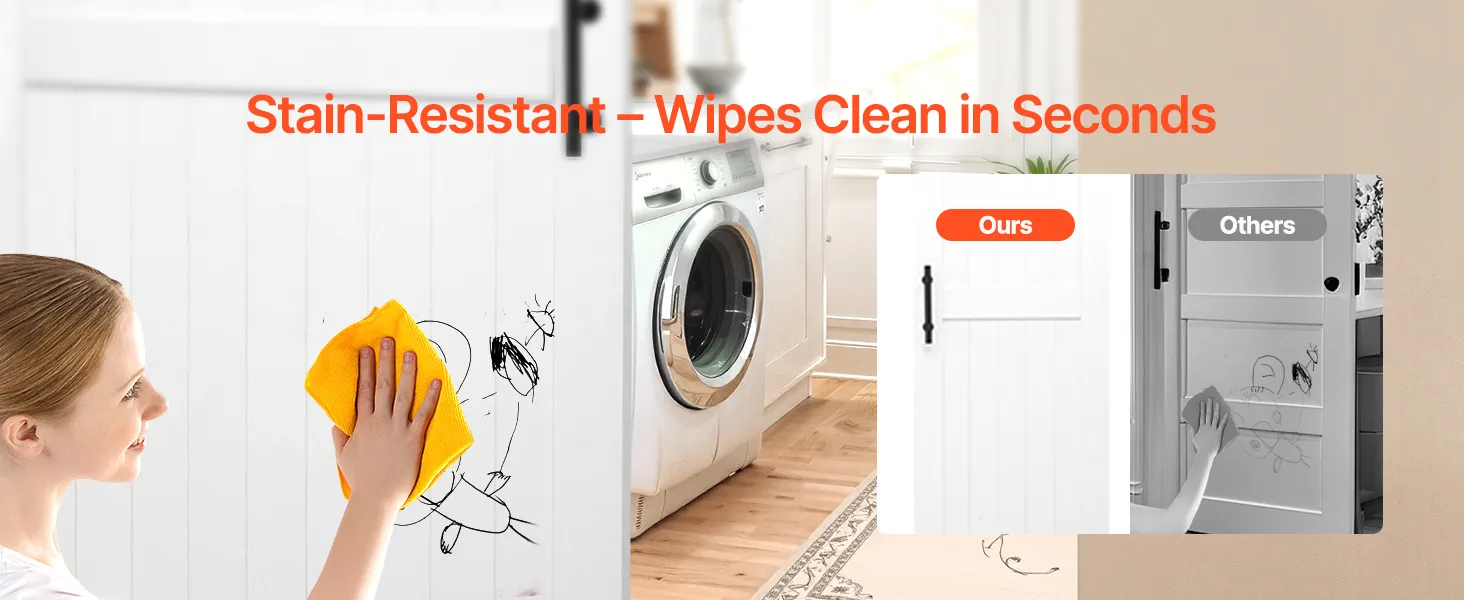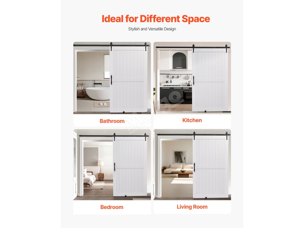 Klasický biely tón bez problémov doplní akýkoľvek štýl interiéru. Posuvné dvere do stodoly sú vyrobené z odolného a pevného materiálu MDF a majú jedinečnú konštrukciu proti deformácii, ktorá zaručuje dlhodobú stabilitu. Jeho vodoodolný a proti poškriabaniu odolný povrch uľahčuje údržbu. Je ideálny pre zaneprázdnené domácnosti.