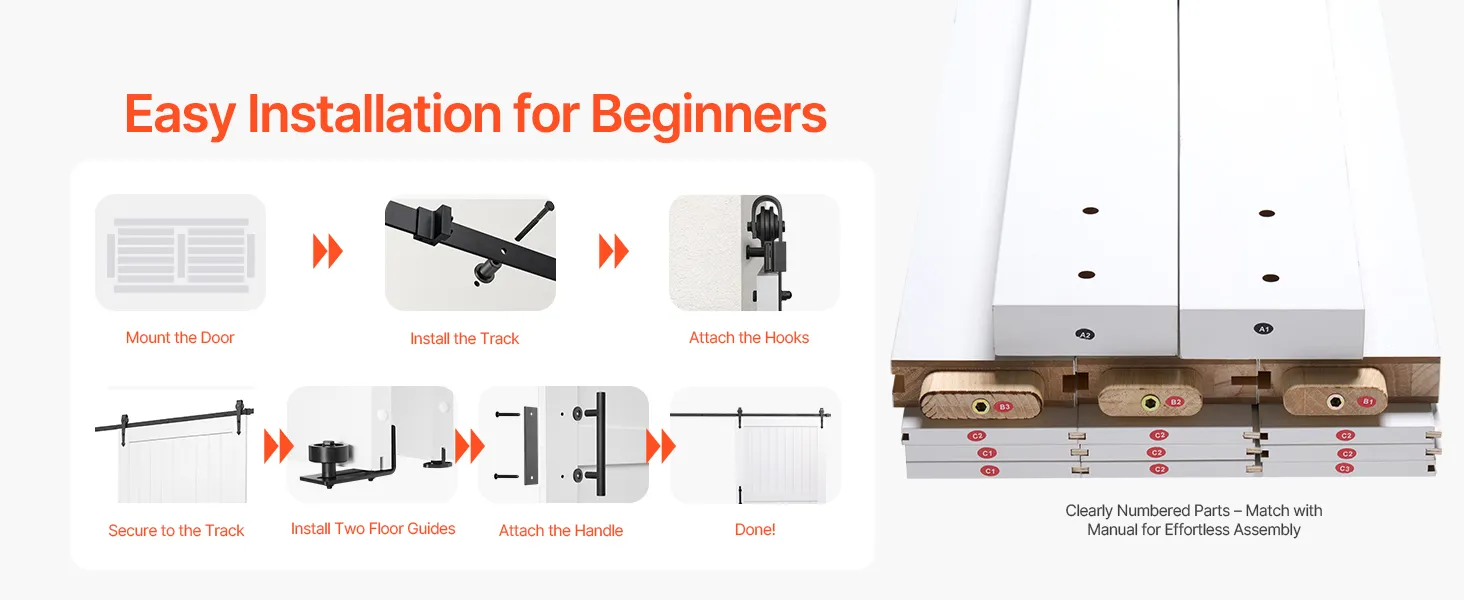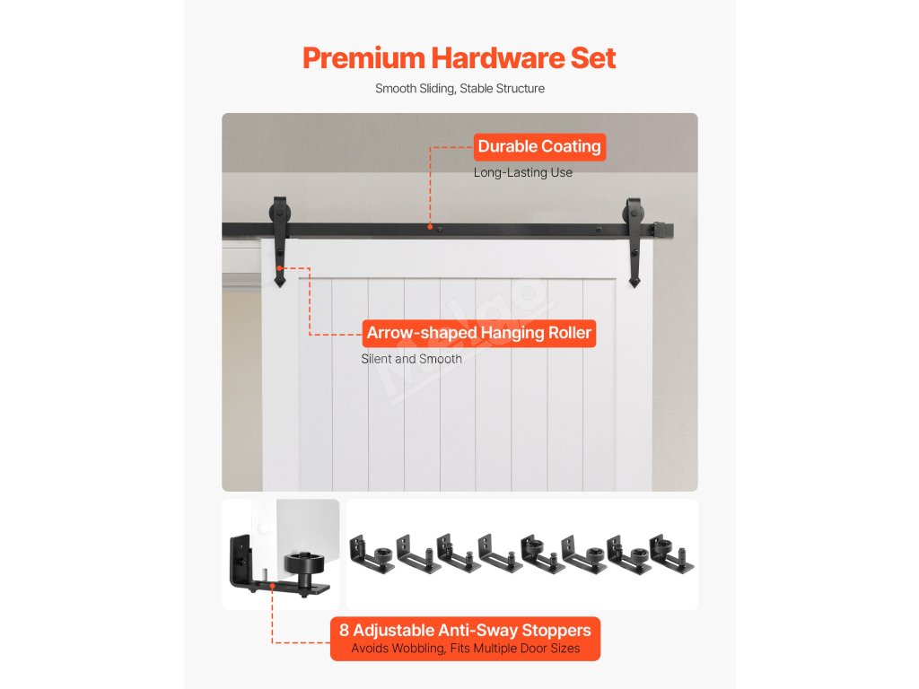 Osem flexibilných kombinácií sa prispôsobí rôznym veľkostiam dverí vo vašej domácnosti. Vďaka jednoduchým nastaveniam a kombináciám môžete zabezpečiť hladký pohyb posuvných dverí, čím sa zníži hluk a viklanie.