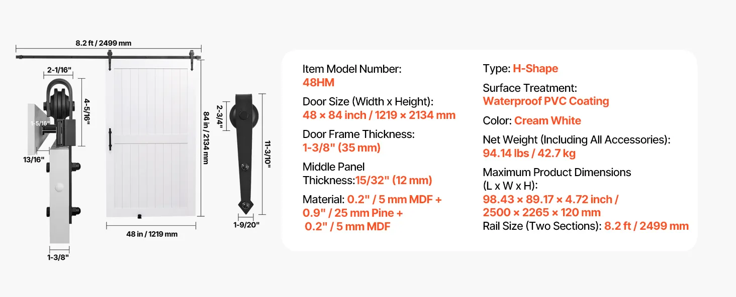 | Veľkosť dverí (šírka x výška) | 48 x 84 palcov / 1219 x 2134 mm |