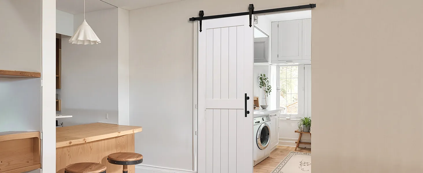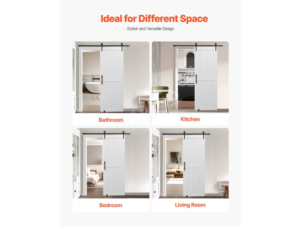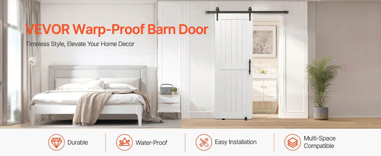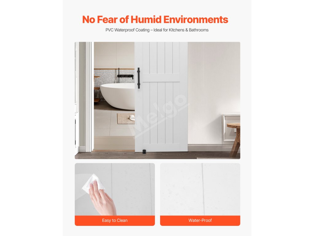 Klasický biely tón bez problémov doplní akýkoľvek štýl interiéru. Posuvné dvere do stodoly sú vyrobené z odolného a pevného materiálu MDF a majú jedinečnú konštrukciu proti deformácii, ktorá zaručuje dlhodobú stabilitu. Jeho vodoodolný a proti poškriabaniu odolný povrch uľahčuje údržbu. Je ideálny pre zaneprázdnené domácnosti.