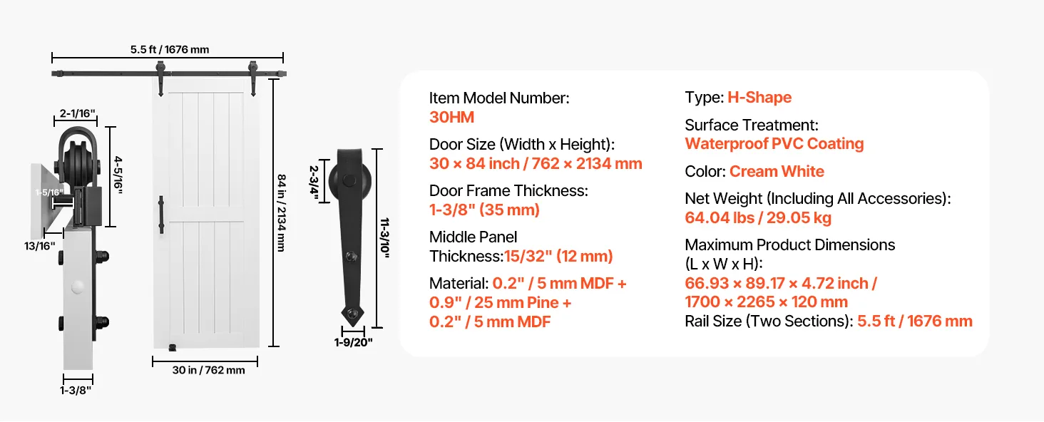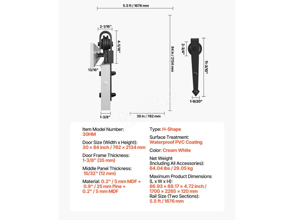 | Veľkosť dverí (šírka x výška) | 30 x 84 palcov / 762 x 2134 mm |