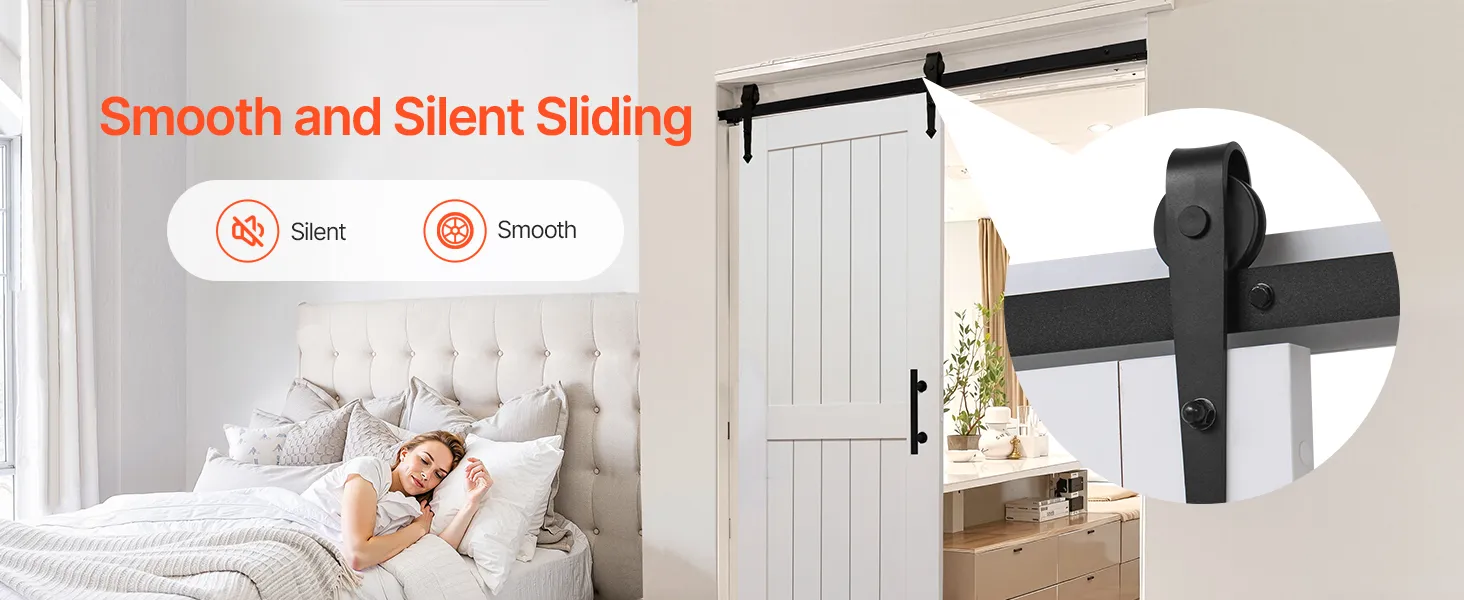 Vysokokvalitná koľajnica je elektrostaticky potiahnutá, čo zabezpečuje vynikajúcu stabilitu. Precízne spracovaný hladký povrch zaisťuje, že stodolové dvere so súpravou kovania sa posúvajú bez námahy a bez prekážok.