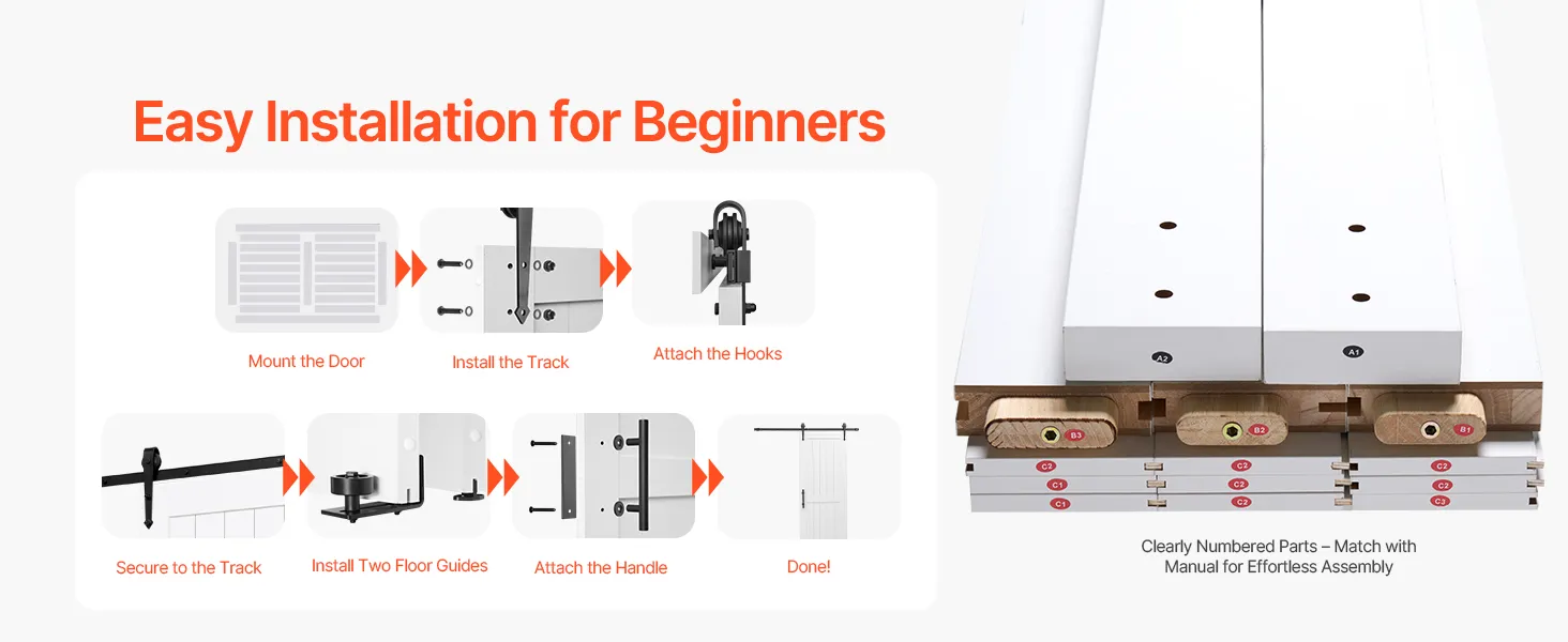 Osem flexibilných kombinácií sa prispôsobí rôznym veľkostiam dverí vo vašej domácnosti. Vďaka jednoduchým nastaveniam a kombináciám môžete zabezpečiť hladký pohyb posuvných dverí, čím sa zníži hluk a viklanie.