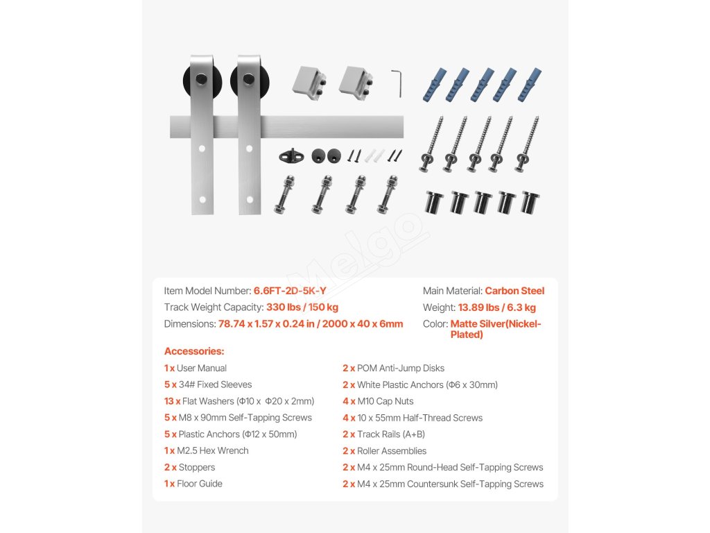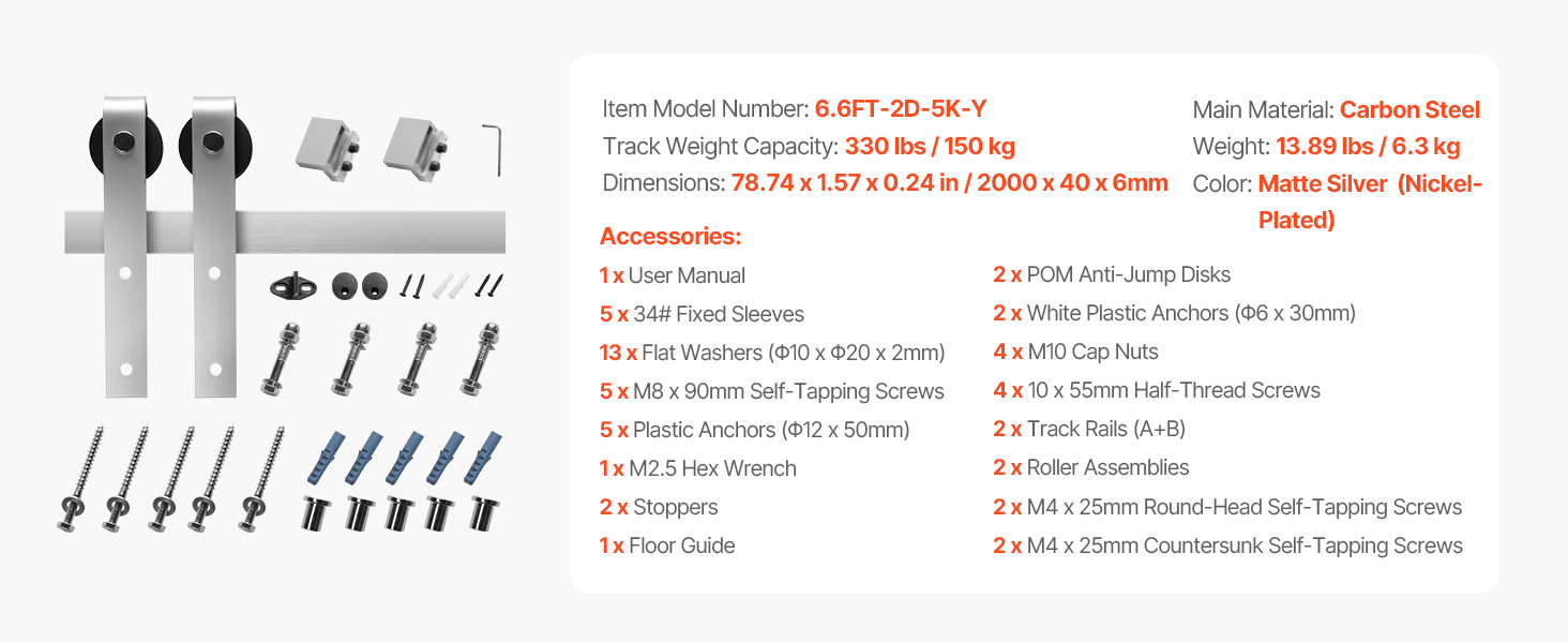 Táto stodolová dverová koľajnica, vyrobená z hrubej a odolnej uhlíkovej ocele, podopiera vaše dvere bez toho, aby sa ohýbala alebo deformovala. Vďaka limitným blokom a POM dielikom proti skákaniu sa nemusíte obávať, že by sa dvere zošmykli alebo poskakovali - váš priestor bude bezpečný!