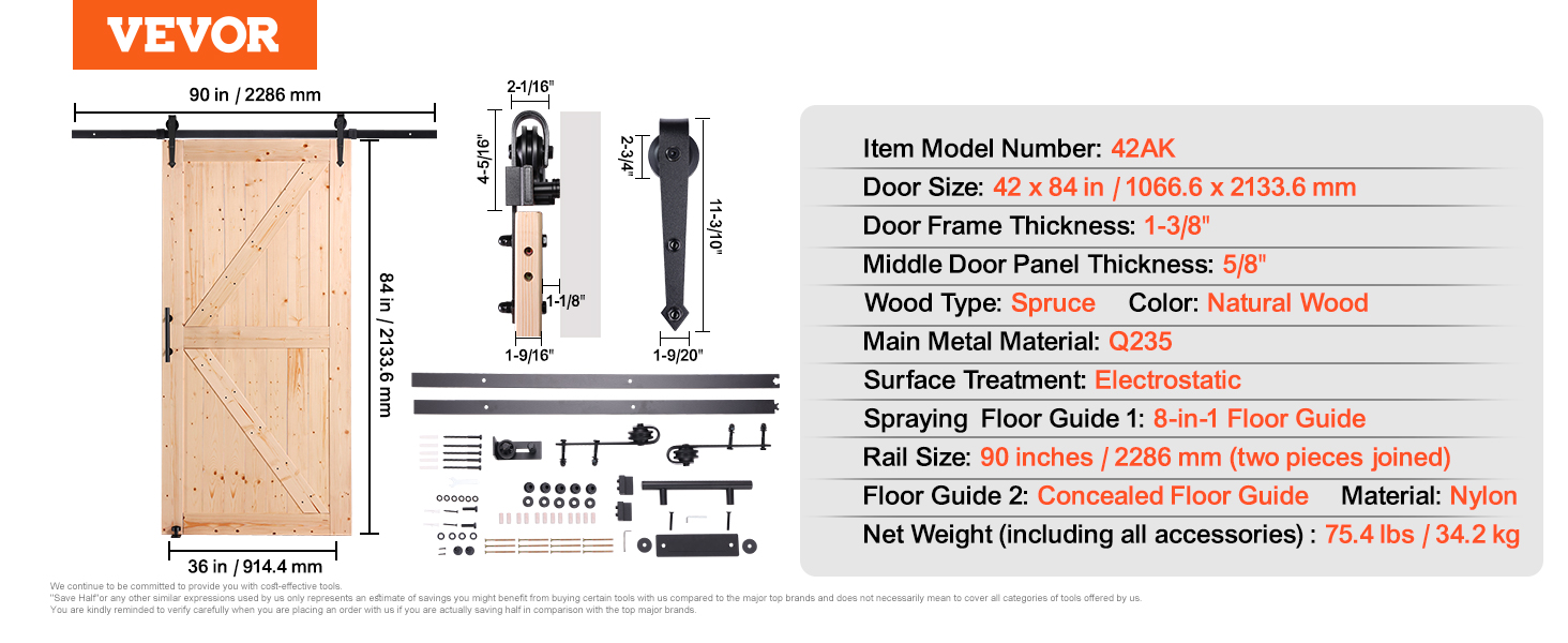 | Veľkosť dverí | 42 x 84 palcov / 1066,8 x 2133,6 mm |