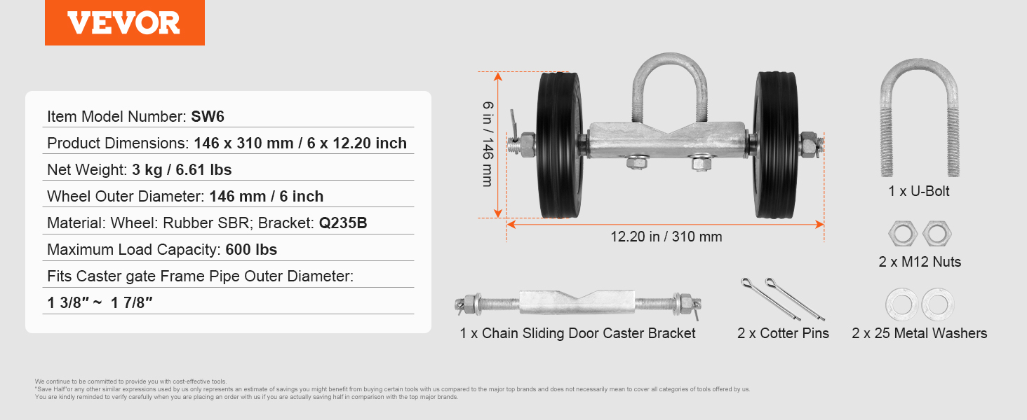 Tento rolovací rám je vyrobený z odolnej ocele a má odolné gumové kolieska, ktoré dokážu uniesť dvere s hmotnosťou až 600 lbs, takže je ideálny pre veľké posuvné dvere. Pozinkovaná antikorózna úprava zaručuje dlhodobú životnosť a odolnosť voči korózii.