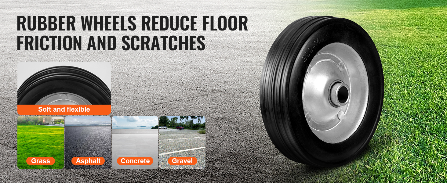 Vysokokvalitné gumové kolieska sú mäkké a zároveň pružné, čím účinne znižujú trenie o zem počas používania a zabraňujú poškriabaniu podlahy. Či už ide o trávu, asfalt, betón alebo štrk, kolieska zabezpečujú hladký pohyb po rôznych povrchoch.
