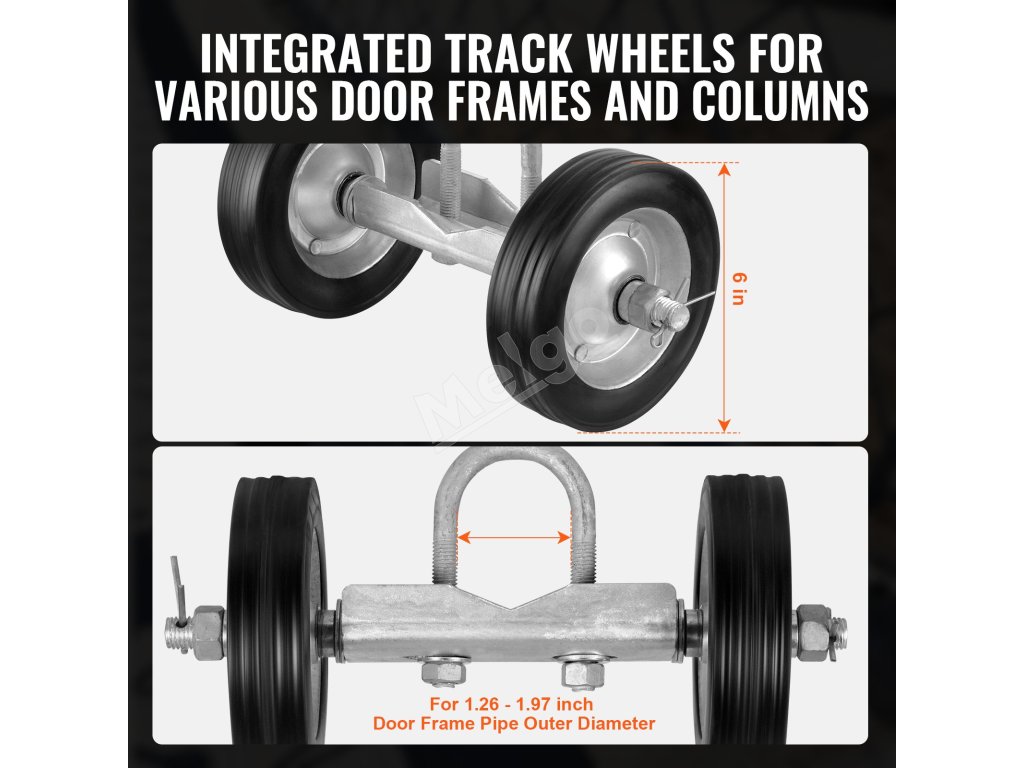 Sada valčekov pre posuvnú bránu, 6” kolieska, nosnosť 600 lbs, čierne