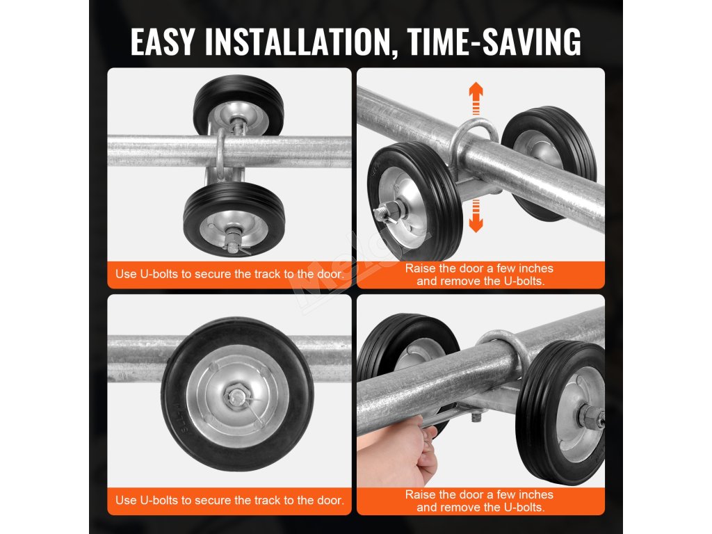 Tento rolovací rám je vyrobený z odolnej ocele a má odolné gumové kolieska, ktoré dokážu uniesť dvere s hmotnosťou až 600 lbs, takže je ideálny pre veľké posuvné dvere. Pozinkovaná antikorózna úprava zaručuje dlhodobú životnosť a odolnosť voči korózii.