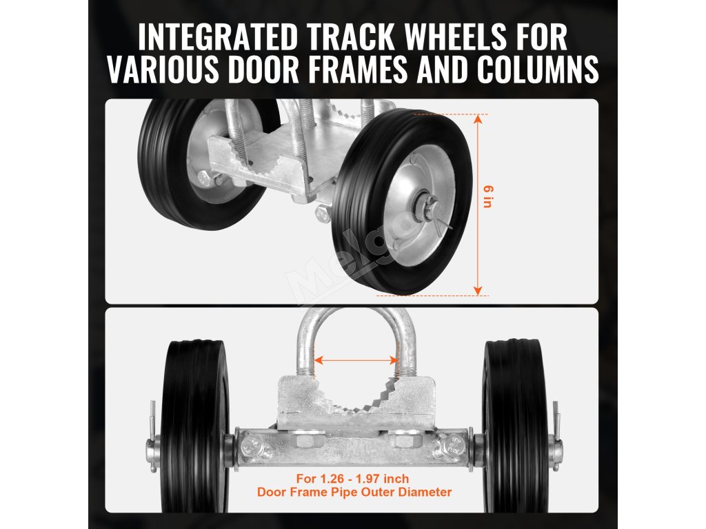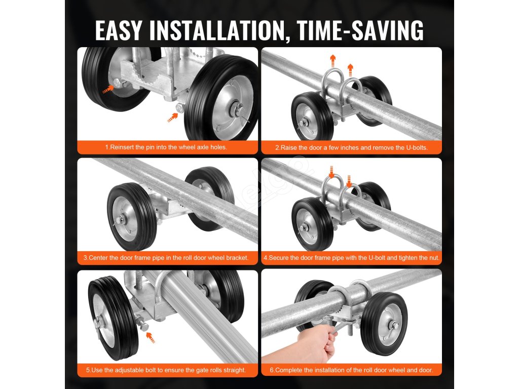 Tento rolovací rám je vyrobený z odolnej ocele a má odolné gumové kolieska, ktoré dokážu uniesť dvere s hmotnosťou až 600 lbs, takže je ideálny pre veľké posuvné dvere. Pozinkovaná antikorózna úprava zaručuje dlhodobú životnosť a odolnosť voči korózii.