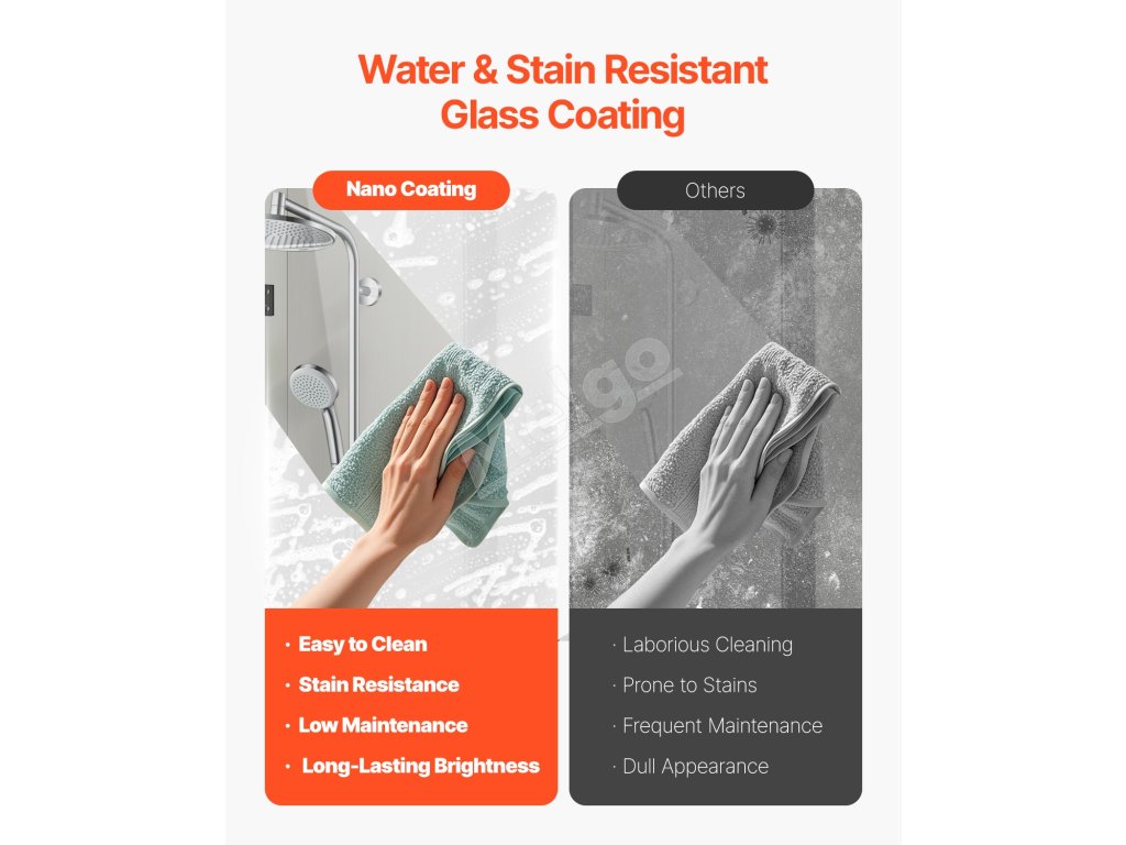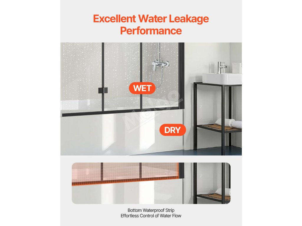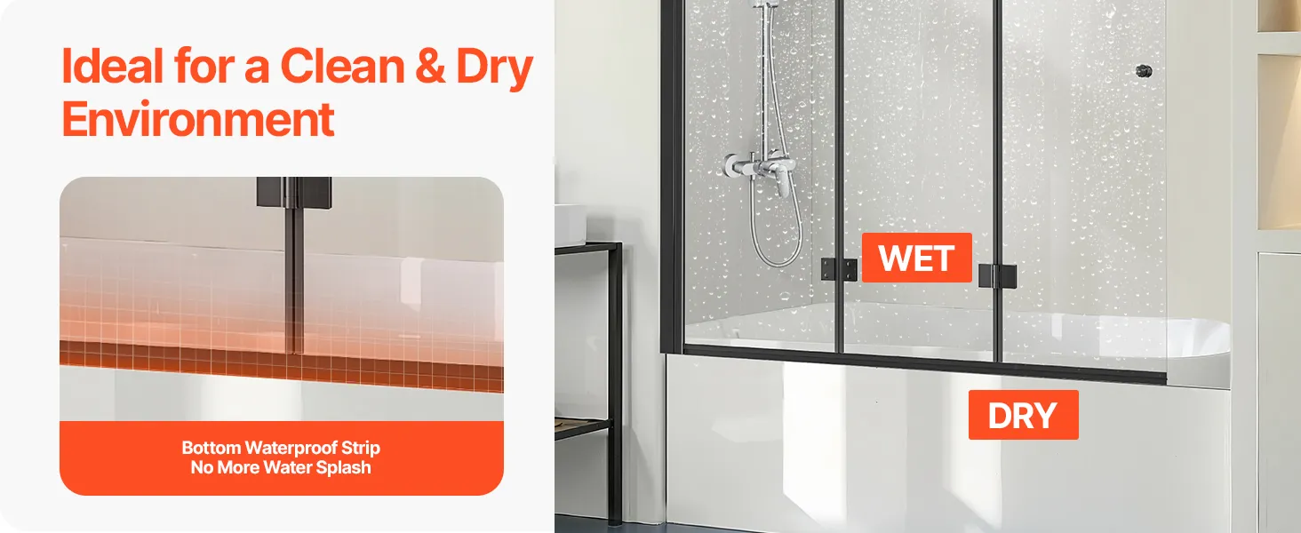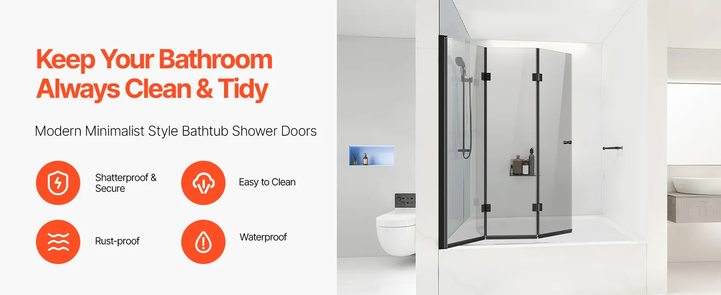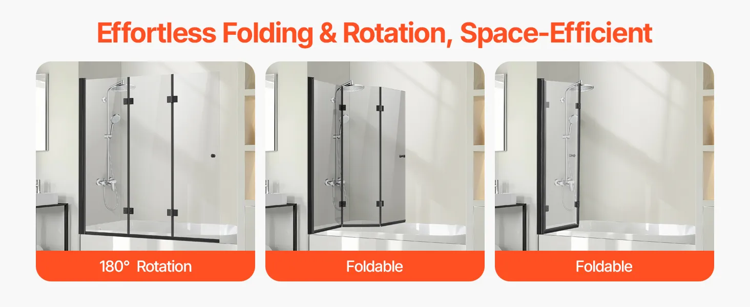 Inovatívna povrchová úprava týchto skladacích vaňových sprchových dverí poskytuje samočistiaci efekt, vďaka ktorému voda a nečistoty ľahko skĺznu. Nielenže zabraňuje poškodeniu vodou a korózii, ale tiež predlžuje pracovnú službu skla, čím zvyšuje celkovú eleganciu vášho vaňového kúta.