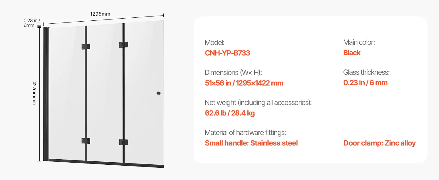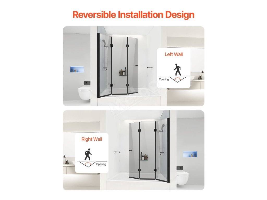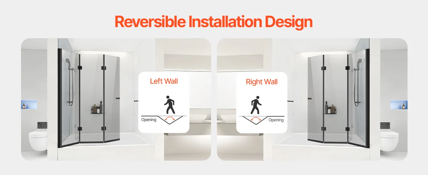 Tieto vaňové sprchové dvere bez námahy doplnia akýkoľvek moderný kúpeľňový dekor. Ich čisté línie a jednoduchá, ale elegantná estetika vytvárajú priestrannú a pokojnú atmosféru a zlepšujú celkový vzhľad vášho kúpacieho priestoru.