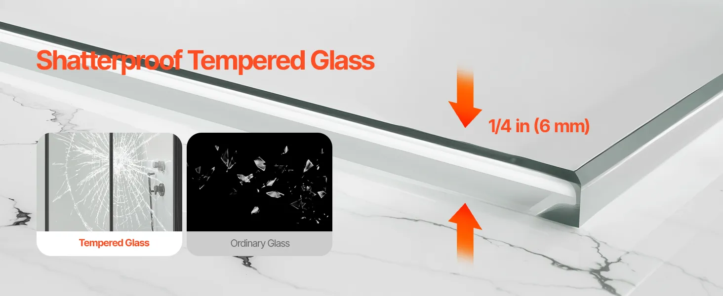 Tieto sklopné výklopné sprchové dvere, navrhnuté pre maximálnu bezpečnosť a odolnosť, sú vybavené hrubým tvrdeným sklom, ktoré poskytuje vynikajúcu ochranu proti prípadným prasklinám a rozbitiu. Jeho robustná konštrukcia zaručuje pokoj pri každom použití.