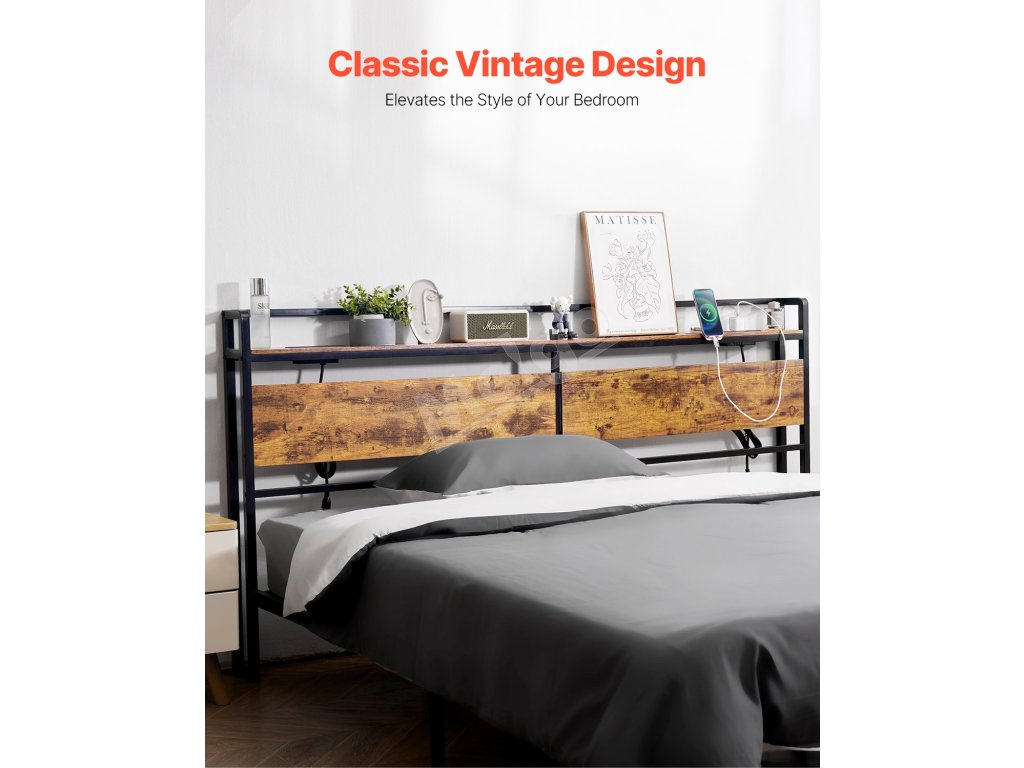 Vintage kombinácia hnedých panelov a čierneho železného rámu dodá vášmu domovu štýlový nádych a vytvorí personalizovaný priestor spálne.