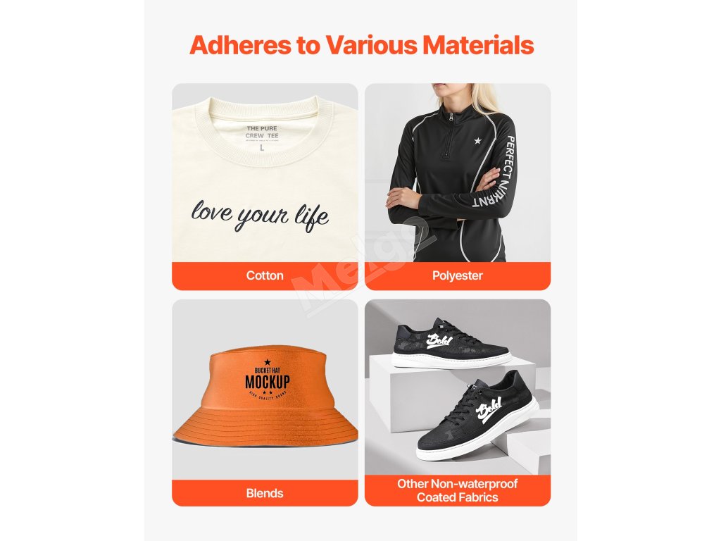 Náš HTV má špeciálne upravený lesklý povrch, ktorý na slnečnom svetle odráža živý, perleťový lesk. Hotový dizajn sa zdá byť výrazný, živý a plný rozmerov, čo dodáva prémiový nádych každému predmetu.