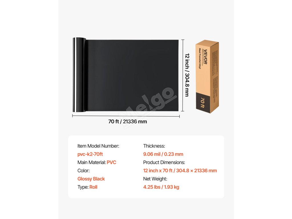 12 palcov x 70 stôp čiernej vinylovej role na prenos tepla