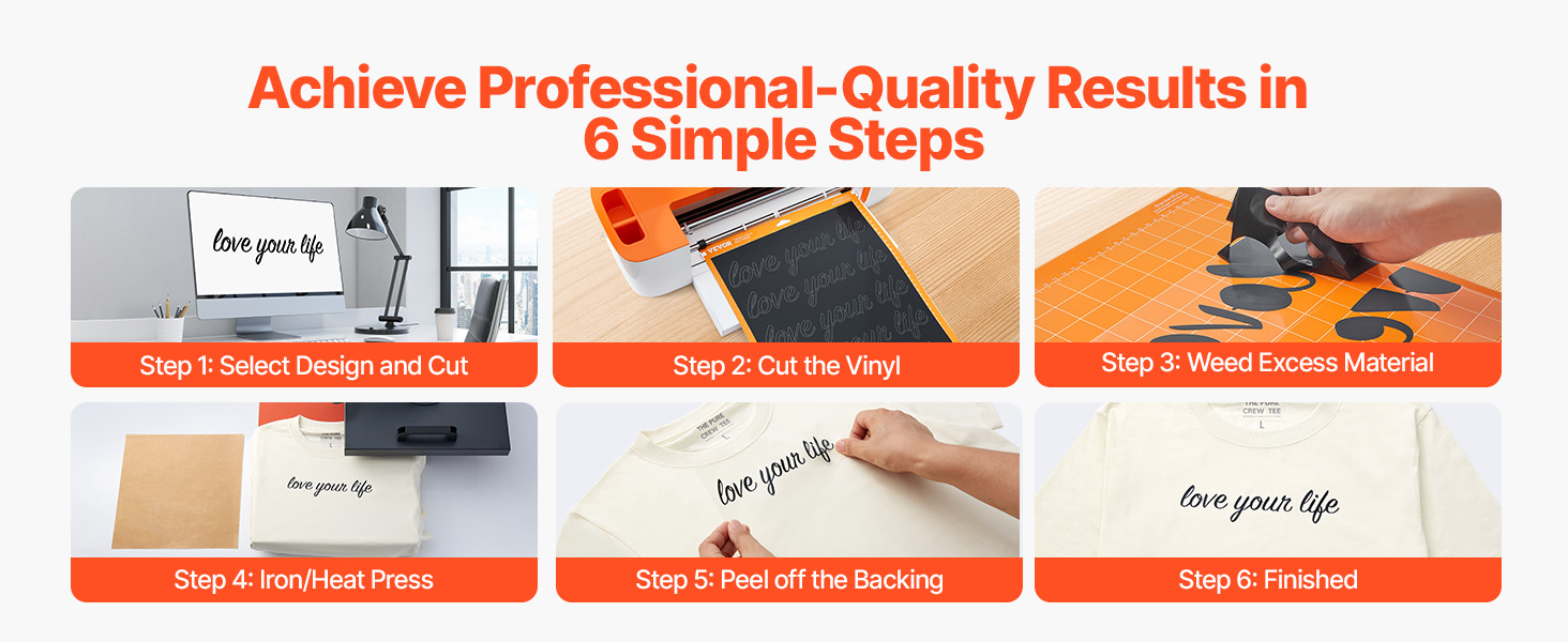 Náš tepelne prenosný vinyl na tričká sa jednoducho používa: navrhnite svoj obrázok, vystrihnite a opleťte vinyl, umiestnite ho na predmet, zahrejte a odlepte nosnú fóliu. Profesionálne vyzerajúci výsledok je ľahko dosiahnuteľný aj pre tých, ktorí s projektmi prenosu tepla začínajú.