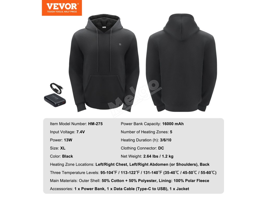 Vyhrievaná mikina s 7.4V batériou, 5 vyhrievacích zón, unisex xl