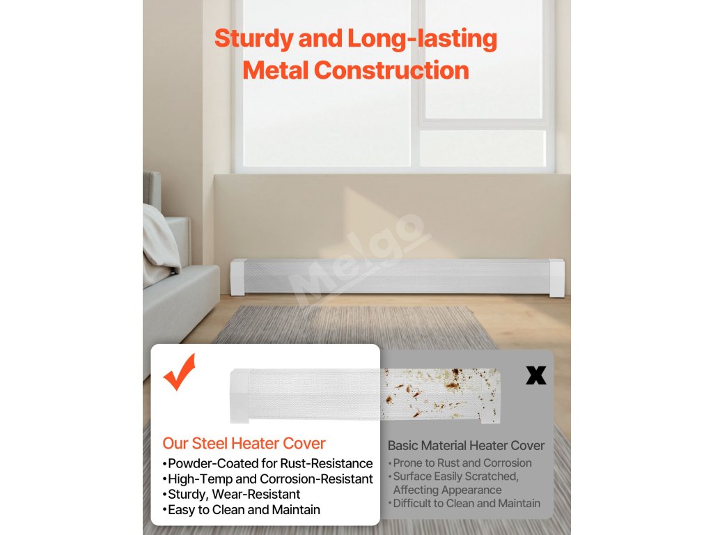 Tento kryt radiátora je vyrobený z robustnej ocele a zaručuje dlhodobé používanie bez deformácie. Obsahuje aj koncové krytky odolné proti poškriabaniu, aby sa zabránilo poškodeniu počas každodenného používania. Optimalizovaná konštrukcia vetracieho otvoru zabraňuje prehriatiu, predlžuje životnosť vykurovacieho telesa.