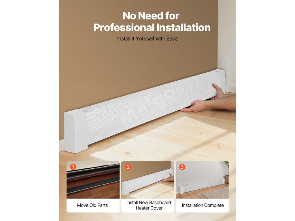 Tento náhradný kryt podlahového vykurovacieho telesa je vhodný pre rôzne vykurovacie telesá a je vyrobený z robustnej ocele s práškovou povrchovou úpravou na jednoduché čistenie. Účinné vetranie zabraňuje prehrievaniu a zabezpečuje rovnomerné rozloženie tepla. Ľahko sa inštaluje a jeho elegantný biely dizajn doplní akýkoľvek interiér domácnosti.