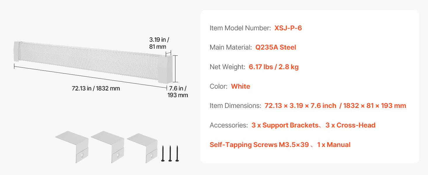 | Rozmery položky | 72.13 x 3,19 x 7,6 palca / 1832 x 81 x 193 mm |