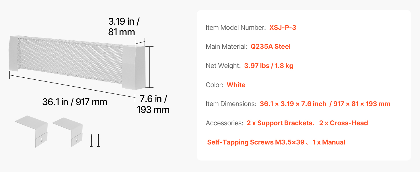 Tento náhradný kryt podlahového vykurovacieho telesa je vhodný pre rôzne vykurovacie telesá a je vyrobený z robustnej ocele s práškovou povrchovou úpravou na jednoduché čistenie. Účinné vetranie zabraňuje prehrievaniu a zabezpečuje rovnomerné rozloženie tepla. Ľahko sa inštaluje a jeho elegantný biely dizajn doplní akýkoľvek interiér domácnosti.