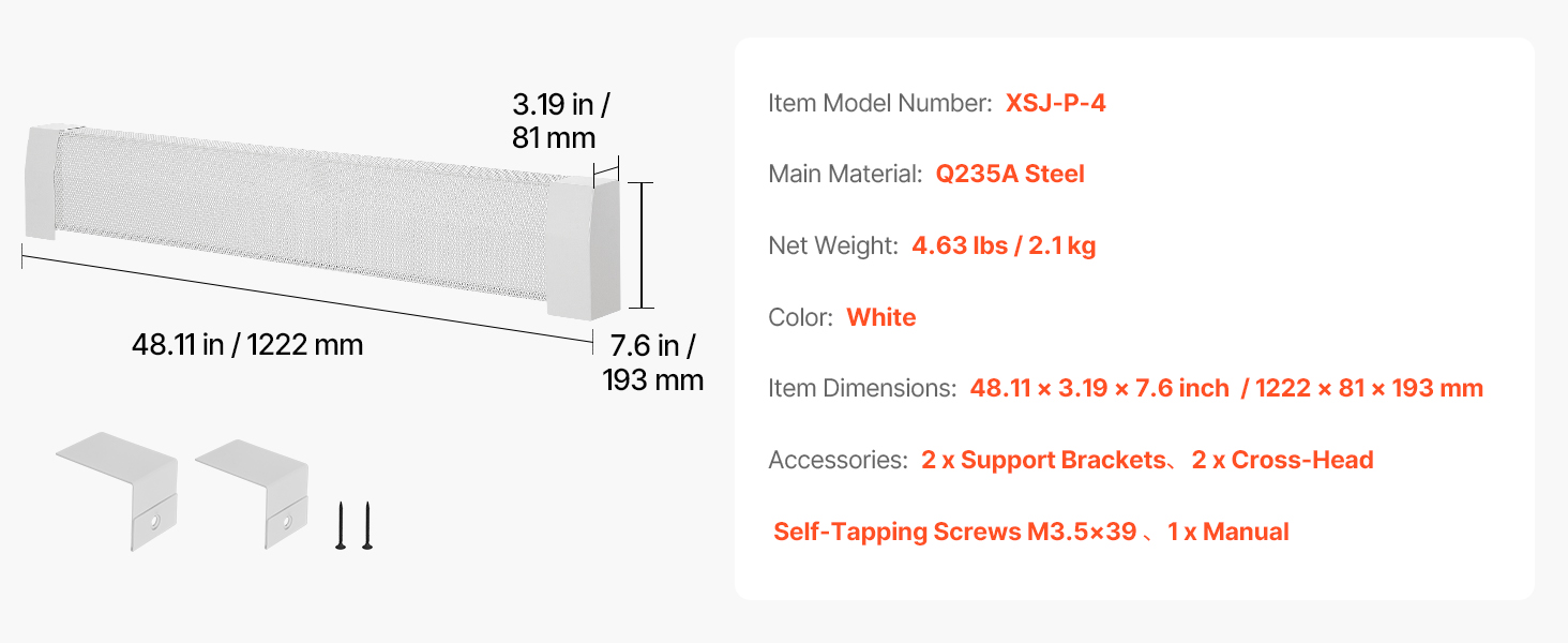 | Rozmery položky | 48.11 x 3,19 x 7,6 palca / 1222 x 81 x 193 mm |