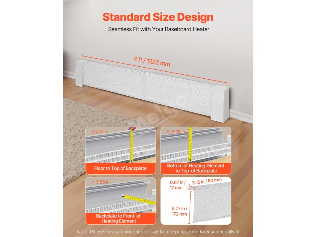 Tento kryt podlahového ohrievača je navrhnutý tak, aby pasoval na rôzne bežné veľkosti ohrievačov. Dôležité upozornenie: Pred nákupom si zmerajte svoj ohrievač, aby ste zaistili ideálne prispôsobenie.