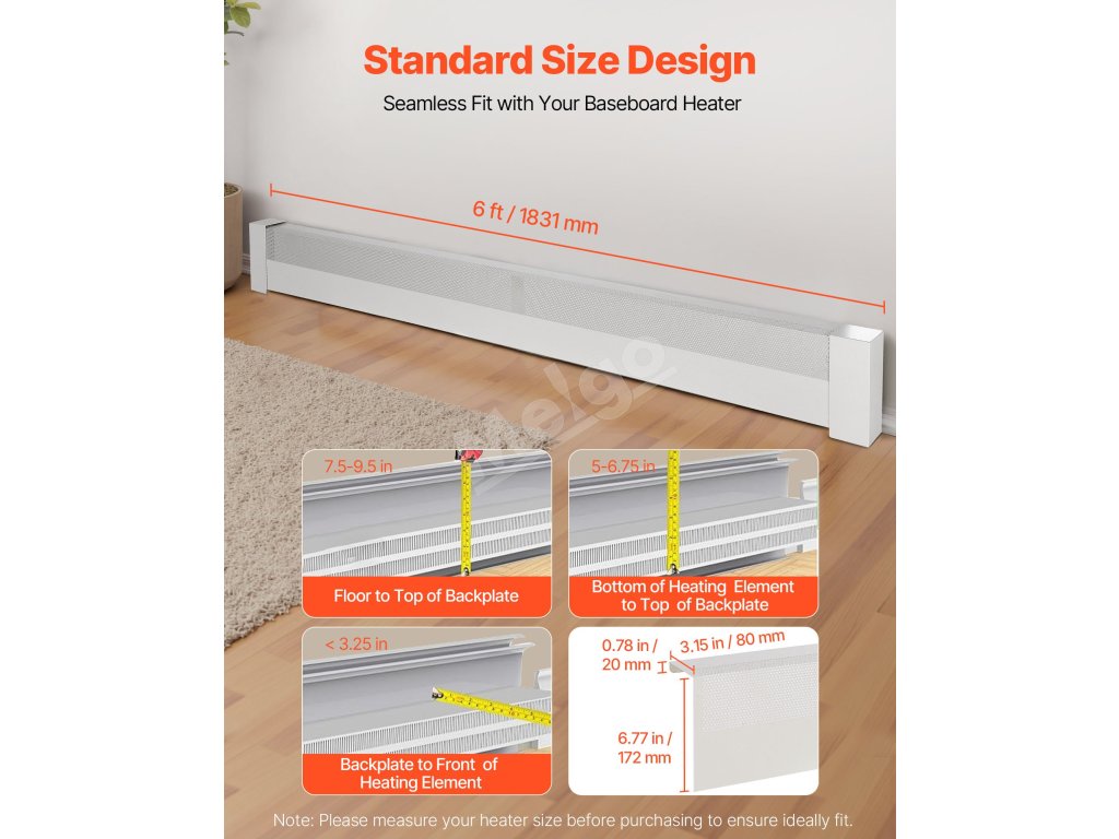 Tento kryt podlahového ohrievača je navrhnutý tak, aby pasoval na rôzne bežné veľkosti ohrievačov. Dôležité upozornenie: Pred nákupom si zmerajte svoj ohrievač, aby ste zaistili ideálne prispôsobenie.