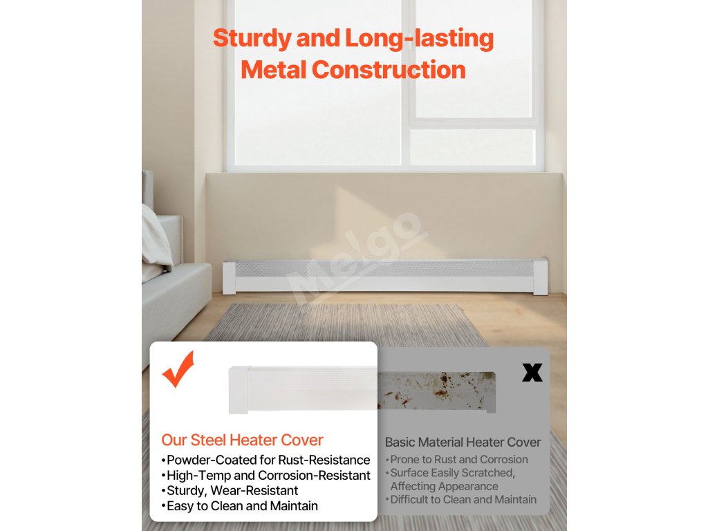 Tento kryt radiátora je vyrobený z robustnej ocele a zaručuje dlhodobé používanie bez deformácie. Obsahuje aj koncové krytky odolné proti poškriabaniu, aby sa zabránilo poškodeniu počas každodenného používania. Optimalizovaný dizajn ventilácie zabraňuje prehrievaniu, predlžuje životnosť vykurovacieho telesa.