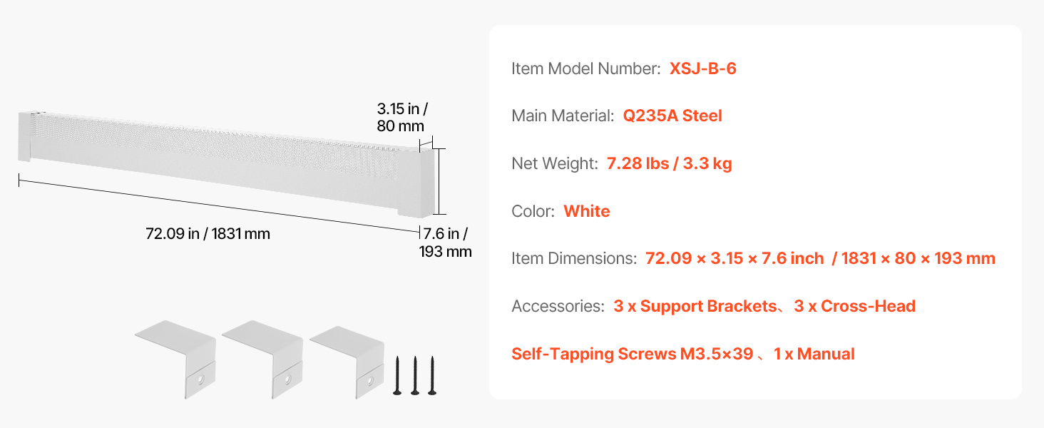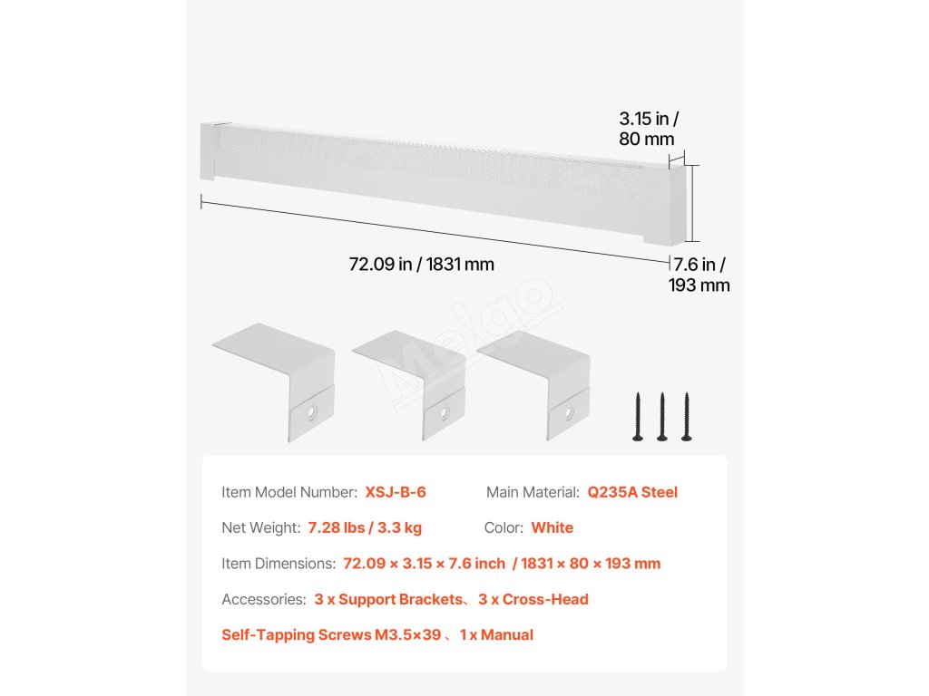 | Rozmery položky | 72.09 x 3,15 x 7,6 palca / 1831 x 80 x 193 mm |