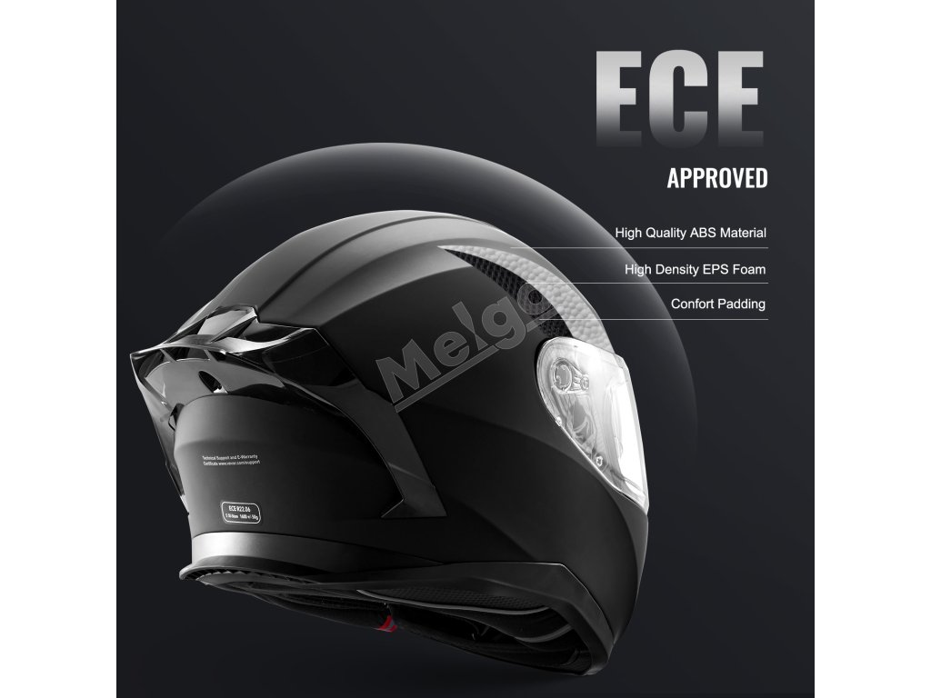 Táto motocyklová prilba je schválená ECE a poskytuje vysoký štandard bezpečnosti pri vašich jazdách. Prilba má výhody, ako je odolnosť proti nárazu, odolnosť proti prieniku a úchytky, ktoré sa len tak ľahko neodstrihnú, čo jazdcom zaručuje pokoj pri každom výlete.