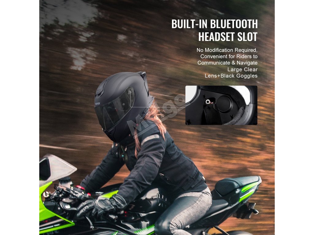 Zabudovaný slot pre náhlavnú súpravu bluetooth v motocyklovej prilbe sa ľahko pripája k inteligentným zariadeniam, čo vám umožňuje počúvať navigáciu, prijímať hovory a ďalšie funkcie počas jazdy, vhodné na používanie počas dlhých jázd.