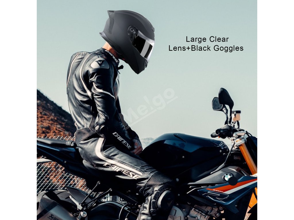 Vybavená je veľkými čírymi sklami a zabudovanými slnečnými clonami, ktoré blokujú vietor, piesok a poletujúce tvory pre vysokú ostrosť. Vstavané slnečné clony automaticky filtrujú oslnenie pri silnom slnku, čím zabraňujú únave očí a uľahčujú prepínanie.