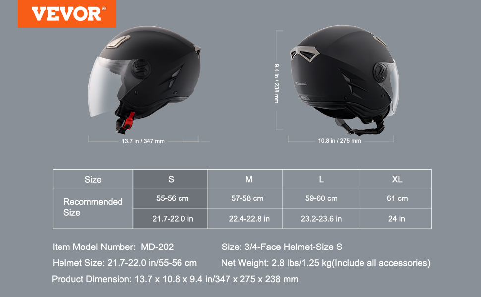 | Veľkosť | prilba s 3/4 tváre - veľkosť S |