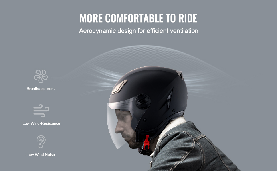 Aerodynamicky optimalizovaný tvar motocyklovej prilby výrazne zamedzuje odporu vetra a hluku, čím zabezpečuje, že jazdec je schopný jasne vnímať svoje okolie, a tým zaručuje včasnú reakciu a bezpečnú jazdu.